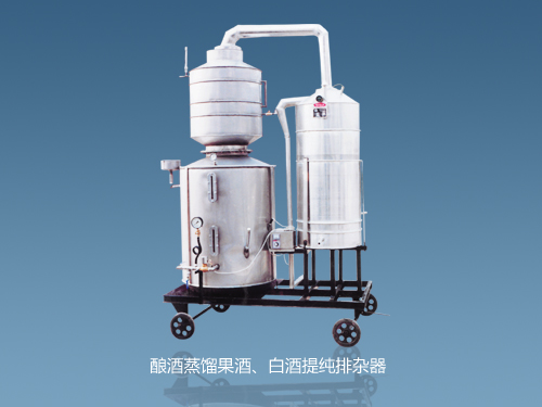 該設(shè)備使用蒸汽隔絕加熱方式,通過三回流兩冷卻蒸餾提純,達到所需要的合格產(chǎn)品,是目前果酒、白酒生產(chǎn)中較為科學(xué)理想的提純排雜設(shè)備。